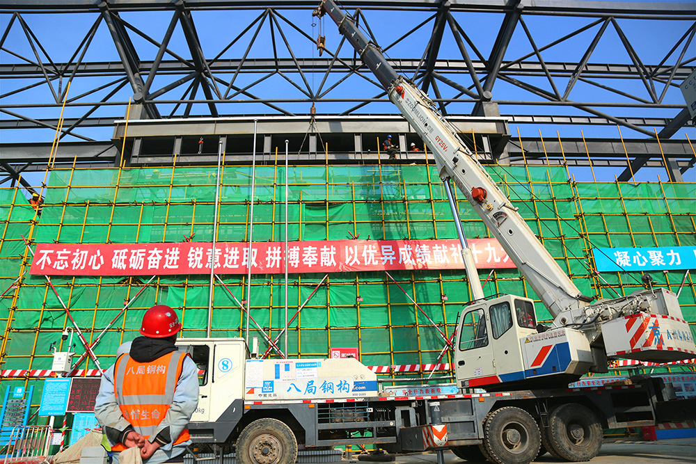 一號至三號展館鋼結(jié)構(gòu)吊裝進(jìn)行中