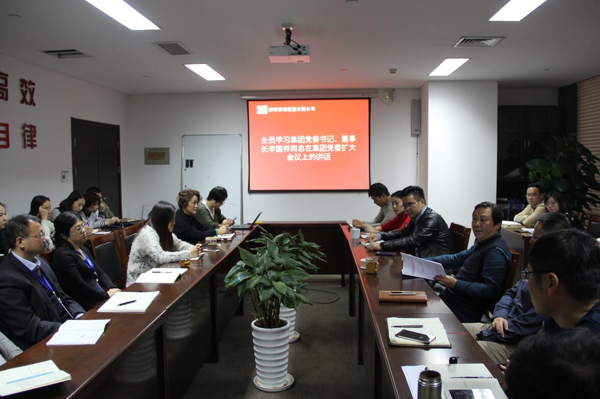 2017年11月15日下午,濟(jì)南西城置業(yè)全體員工學(xué)習(xí)集團(tuán)黨委書記、董事長李國祥同志在集團(tuán)黨委擴(kuò)大會議上的講話,落實集團(tuán)黨委要求,學(xué)好、學(xué)懂黨的十九大精神,振奮士氣,推動工作,努力完成各項任務(wù)指標(biāo),爭創(chuàng)更佳經(jīng)營業(yè)績。