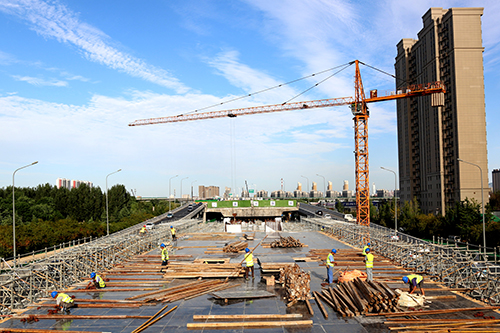 橋梁頂升結(jié)束后,將對103#~105#墩采用斷柱頂升接高墩柱的方法進行施工,墩柱頂升完成后,再對全橋進行墩柱連接和橋臺改造,最后施工支座墊石及支座安裝,安裝支座后進行落梁工作。項目計劃9月底完成高架段主體結(jié)構(gòu),后續(xù)將進行防撞墻、聲屏障、橋面、路燈、交通設施等施工。確保2019年1月1日實現(xiàn)北園大街快速路西延高架段通車,地面快速路將于2019年6月底通車。