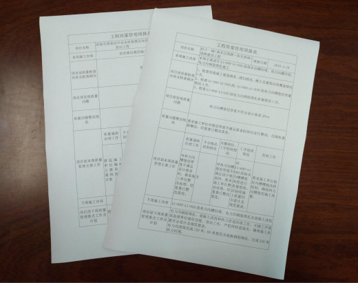 項(xiàng)目部接收質(zhì)量管理交底,并承諾貫徹執(zhí)行?,F(xiàn)各項(xiàng)目已按交底要求開展相關(guān)工作,并開始上報(bào)質(zhì)量管理工作周報(bào)等報(bào)表,公司可及時(shí)掌握各項(xiàng)目質(zhì)量管理動(dòng)態(tài),有針對性的調(diào)度各項(xiàng)目部質(zhì)量管理工作,有效提高了公司質(zhì)量管理監(jiān)管的力度。