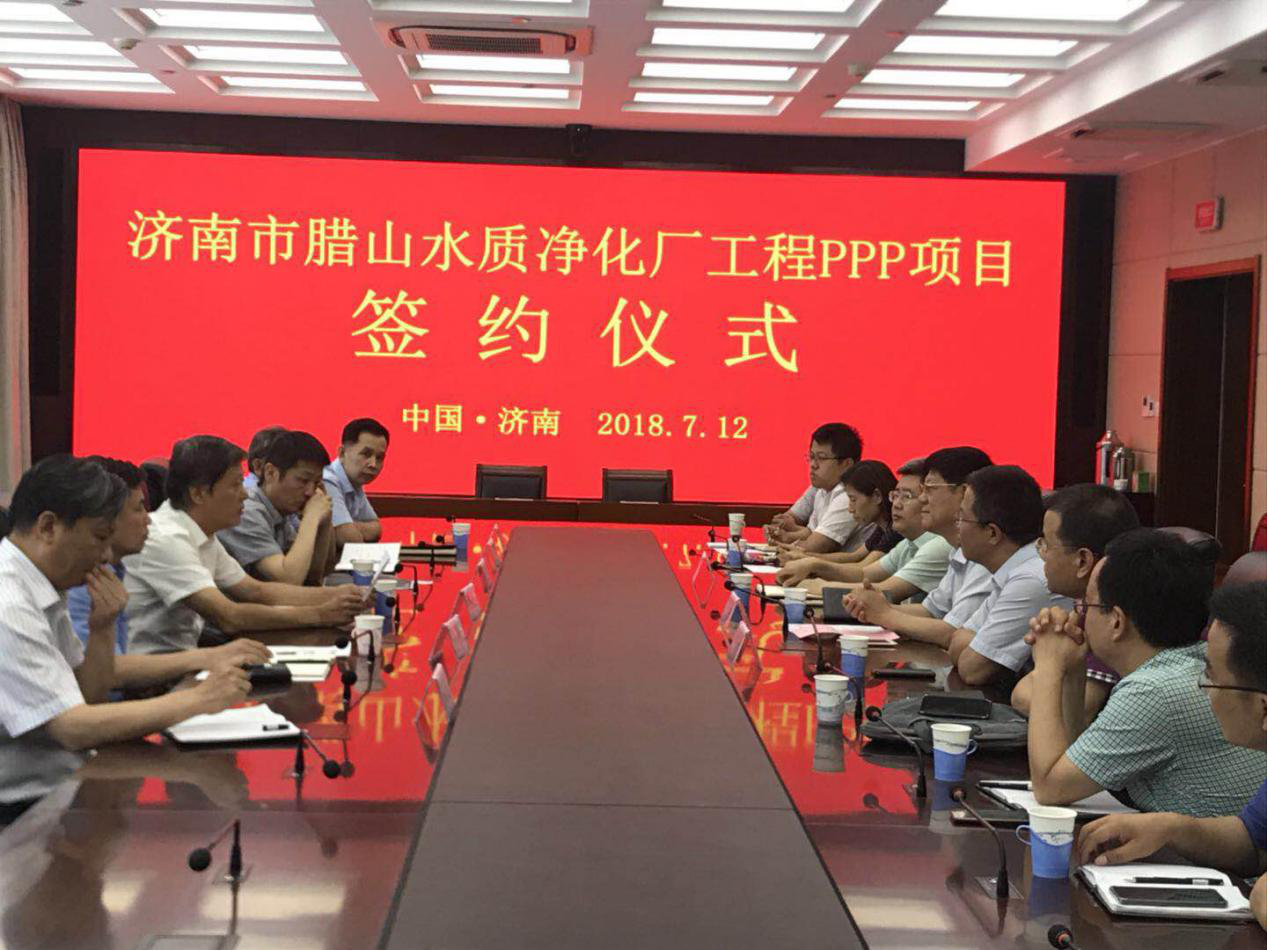2018年7月12日上午10點(diǎn)30分,在龍奧大廈G1407會議室,市城鄉(xiāng)水務(wù)局舉行了濟(jì)南市臘山水質(zhì)凈化廠工程政府和社會資本合作(PPP)項(xiàng)目簽約儀式,與中標(biāo)單位北控水務(wù)(中國)投資有限公司簽署了ppp項(xiàng)目合同。會議由市城鄉(xiāng)水務(wù)局排水處處長湯啟剛主持,市城鄉(xiāng)水務(wù)局副巡視員朱丹彤做出重要講話,資產(chǎn)運(yùn)營公司副總經(jīng)理李琰、北控水務(wù)東部大區(qū)總經(jīng)理于良法先后發(fā)言。