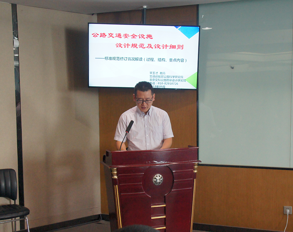 會(huì)上,首先由《公路交通安全設(shè)施設(shè)計(jì)規(guī)范》及《公路交通安全設(shè)施設(shè)計(jì)細(xì)則》的主要參編人員、交通運(yùn)輸部公路科學(xué)研究院、北京交科公路勘察設(shè)計(jì)研究院宋玉才教授從規(guī)范的修訂原則、指導(dǎo)思想、重點(diǎn)章節(jié)說(shuō)明、修改內(nèi)容以及新增安全設(shè)施有關(guān)內(nèi)容等方面進(jìn)行了細(xì)致深入的解讀。隨后,“3M”公司、山東路聯(lián)交通材料有限公司分別介紹了“標(biāo)線質(zhì)量控制及檢測(cè)方法”、“3MDC系列反光膜”、“路面養(yǎng)護(hù)材料”的性能特點(diǎn)及用途,以及產(chǎn)品在公路、橋梁等領(lǐng)域的工程建設(shè)中實(shí)際應(yīng)用情況。與會(huì)人員就交通安全設(shè)施設(shè)計(jì)、施工、檢測(cè)、質(zhì)量控制等方面進(jìn)行了技術(shù)交流與探討。