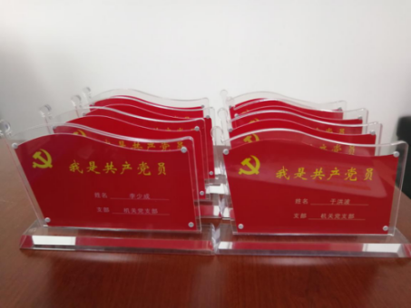活動(dòng)中,機(jī)關(guān)支部黨員結(jié)合自身崗位實(shí)際,做出爭(zhēng)創(chuàng)“黨員先鋒崗”承諾,由支部統(tǒng)一制作“我是共產(chǎn)黨員”座牌,擺放在每位黨員辦公桌的醒目位置。通過(guò)座牌亮出黨員光榮身份,時(shí)刻警醒和監(jiān)督黨員,踐行承諾,接受群眾監(jiān)督,使黨員的身份意識(shí)、責(zé)任意識(shí)和先鋒模范意識(shí)得到進(jìn)一步提高。