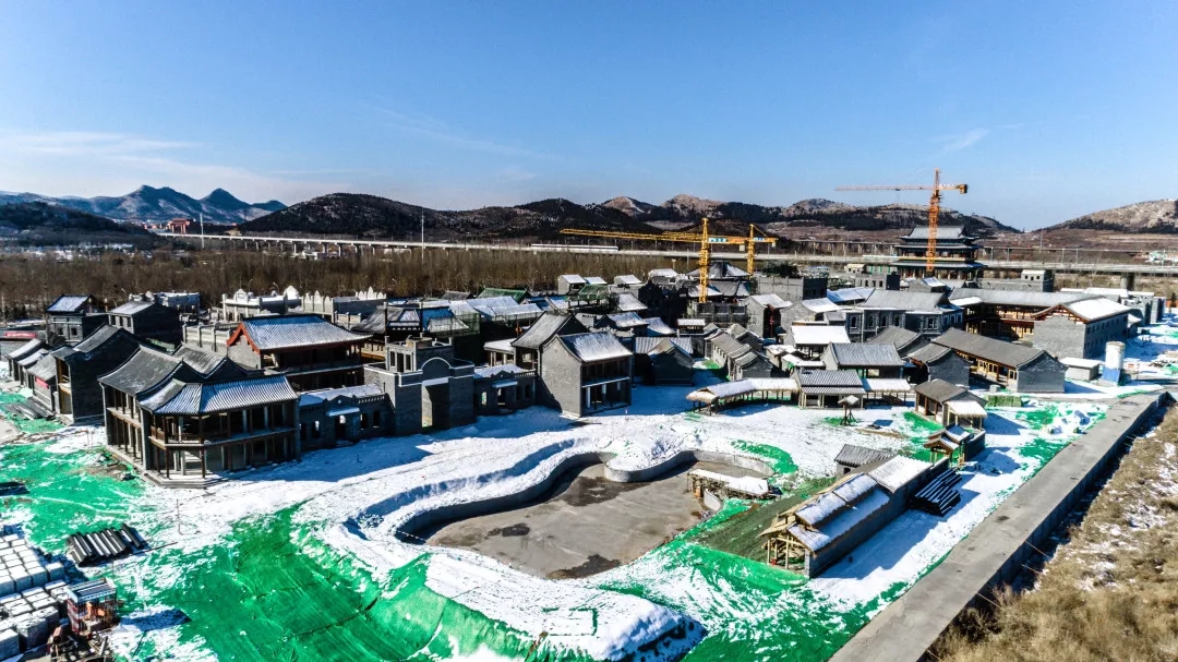 正在建設(shè)沖刺中的老濟(jì)南街,兼具明清與民國(guó)風(fēng)情的各色建筑韻味初顯,親王府、城隍廟、城門樓、書院、醫(yī)院、警察局等各類建筑一目了然,園區(qū)氛圍日益濃厚起來,不久的將來,這些場(chǎng)景都將會(huì)出現(xiàn)在影視作品中?,F(xiàn)場(chǎng)施工負(fù)責(zé)人表示,現(xiàn)場(chǎng)正在開足馬力搶工收尾,目前園區(qū)內(nèi)共有500余名工人在不同區(qū)域,進(jìn)行各個(gè)單體圍墻施工、管道及地面鋪裝、城墻砌筑與熱力等工作,確保4月15日項(xiàng)目主體工程竣工,達(dá)到可拍攝條件。