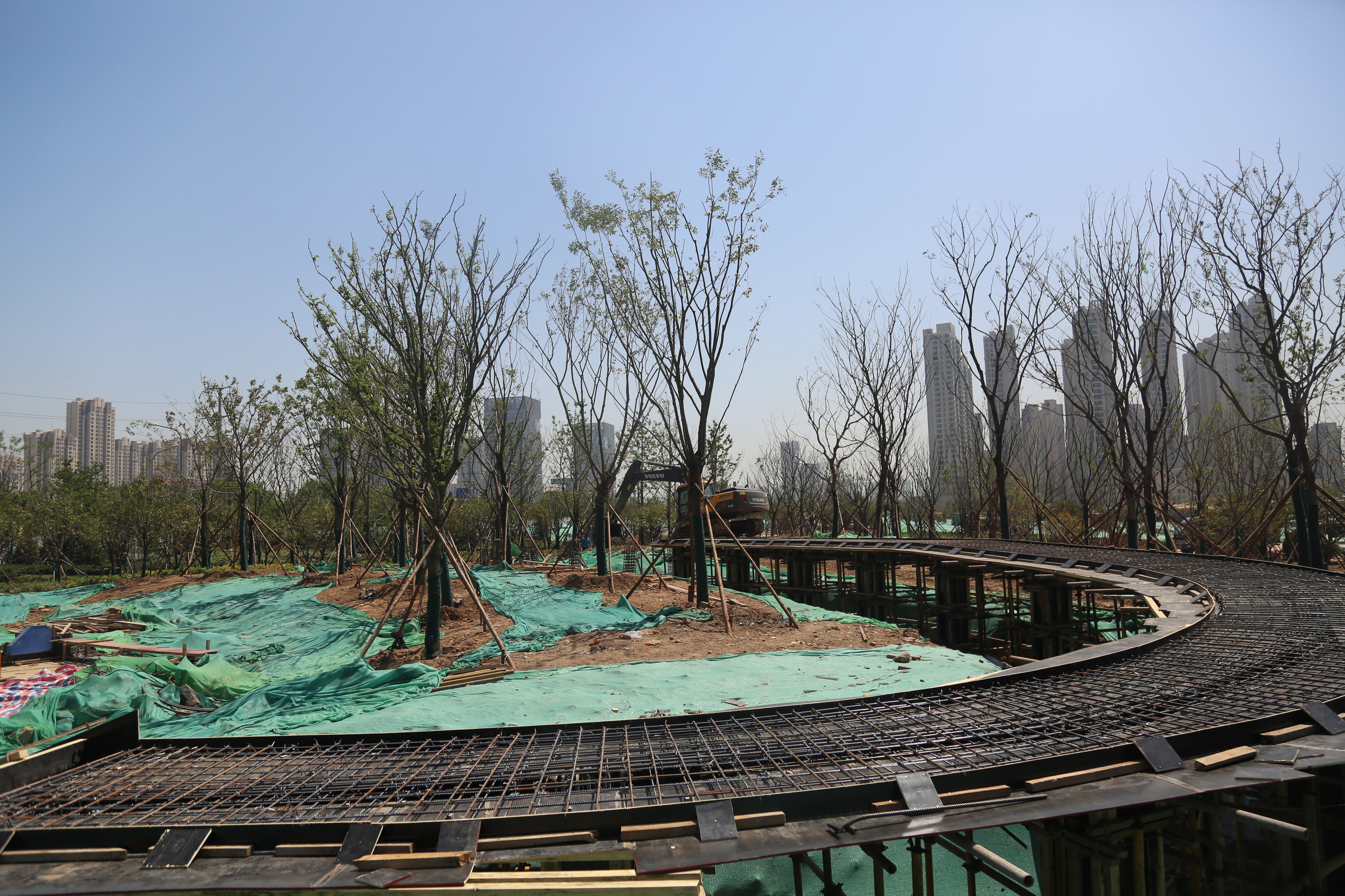 云錦湖公園的綠化包含苗木種植、石材鋪裝、雕塑、亭廊、廣場、噴泉、棧道、游步路等工程。沿著公園西北部的波浪廣場進(jìn)入內(nèi)部,園區(qū)內(nèi)部綠化效果初顯,多臺挖掘機(jī)正在湖區(qū)部分挖運(yùn)土石方,隨著湖區(qū)面積的擴(kuò)大,注水工作也將逐步展開。同時,園區(qū)4米游步路正在全面鋪設(shè)過程中,屆時可通過游步路進(jìn)行環(huán)湖觀賞游覽。