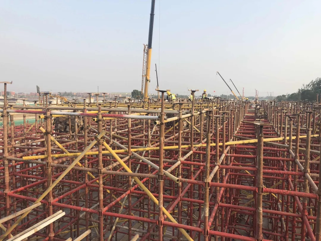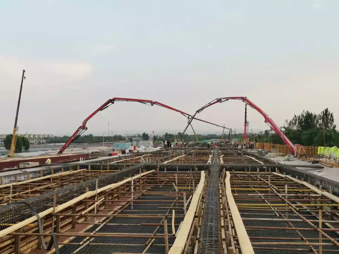 1號(hào)高架橋施工中,共投入5個(gè)施工隊(duì)伍、29個(gè)施工班組,870多名工人,采用平行、流水施工相結(jié)合及網(wǎng)絡(luò)計(jì)劃圖指導(dǎo),進(jìn)行有序、平衡、連續(xù)施工,統(tǒng)籌安排,做到“三早一快”即早進(jìn)場(chǎng)、早安家設(shè)營(yíng)、早開(kāi)工、盡快形成大干局面。項(xiàng)目部倡導(dǎo)“嚴(yán)管就是厚愛(ài)”“今天再晚也是早、明天再早也是晚”的管理理念,嚴(yán)管管理人員、嚴(yán)控支架搭設(shè)、預(yù)應(yīng)力張拉、波紋管定位、保護(hù)層控制、混凝土質(zhì)量把控等關(guān)鍵環(huán)節(jié)。與征拆搶進(jìn)度、與天氣搶進(jìn)度、與施工環(huán)境搶進(jìn)度,凝心聚力、攻堅(jiān)克難,堅(jiān)持奮戰(zhàn)221天,1號(hào)高架橋順利貫通!