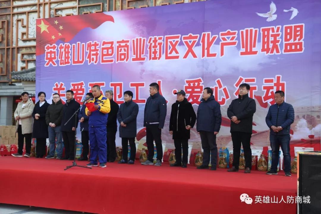 2019年2月1日,農(nóng)歷臘月二十七,濟(jì)南市英雄山人防工程管理有限責(zé)任公司作為英雄山特色商業(yè)街區(qū)文化產(chǎn)業(yè)聯(lián)盟成員單位,與多家聯(lián)盟單位聯(lián)合發(fā)起了中國(guó)濟(jì)南特色街區(qū)聯(lián)盟“關(guān)愛環(huán)衛(wèi)工人,愛心行動(dòng)”主題公益活動(dòng),為服務(wù)于街區(qū)的環(huán)衛(wèi)工人們獻(xiàn)上節(jié)日的祝福,并送上了個(gè)人捐款與農(nóng)副產(chǎn)品。市中區(qū)副區(qū)長(zhǎng)潘建軍、四里村街道辦事主任崔珉受邀參加了本次活動(dòng)。