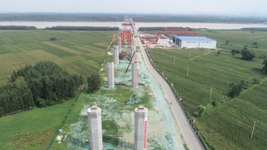 由濟南城市建設集團負責建設的鳳凰路黃河大橋工程(G220至濟青高速公路王舍人互通立交連接線工程)位于濟南市歷城區(qū)、高新區(qū)、濟陽區(qū),項目路線南起壩王路與荷花路交叉口,接現(xiàn)狀壩王路,依次跨越邯膠鐵路聯(lián)絡線、南水北調(diào)工程濟東明渠后繼續(xù)往北,在小河套村向西北方向延伸,跨越黃河后與G220平交。項目全長6683米,包括特大橋2座,其中跨黃河主橋和引橋長3788米,跨邯膠鐵路聯(lián)絡線及南水北調(diào)橋梁長1323米。
