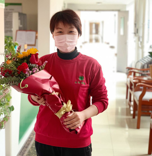 許娟,金齡健康產(chǎn)業(yè)投資(山東)有限公司運營部經(jīng)理,負責照料園區(qū)老人的日常生活。直到有人將鮮花送到,她才意識到當天是國際婦女節(jié)。自春節(jié)以來,許娟與丈夫因為都在一線單位工作幾乎沒有碰面,兩個年幼的女兒只能托付給公婆照看,她把家人的付出與支持化作對工作的熱忱,將這份愛傳遞給身邊的每一個人。