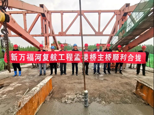 4月19日,隨著最后一方混凝土澆筑完成,經(jīng)過(guò)10個(gè)月的建設(shè),濟(jì)寧金鄉(xiāng)新萬(wàn)福河復(fù)航工程孟樓橋懸臂現(xiàn)澆箱梁順利合攏。