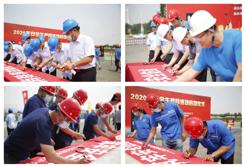 儀式結束后,參加儀式的全體人員在印有“消除事故隱患,筑牢安全防線”安全主題條幅上進行簽名。