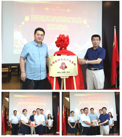 張振江與張慶忠一同為實踐基地揭牌,《雷鋒》雜志向濟西農(nóng)業(yè)捐贈了《學習雷鋒好榜樣》一書和部分《雷鋒》雜志。