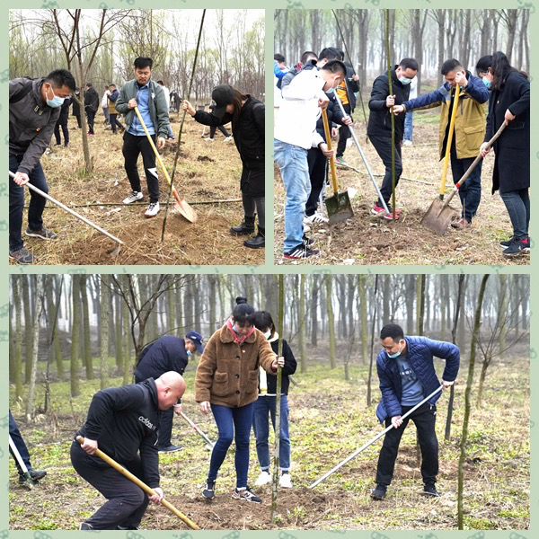 “好雨知時節(jié),當(dāng)春乃發(fā)生”,活動現(xiàn)場,廣大黨員干部分工協(xié)作,有的挖坑鏟土,有的扶樹正苗,有的踩土定植,大家按照“三埋兩踩一提苗”,挖坑、栽樹、蓋土等各環(huán)節(jié)都精心對待,栽得認(rèn)真,干得賣力,整個植樹活動現(xiàn)場一片熱火朝天的勞動景象。一位位黨員干部親手栽下“希望樹”“幸福樹”,精心栽下的一棵棵樹苗,為春天增添了無限生機(jī),為這片土地穿上“綠裝”。
