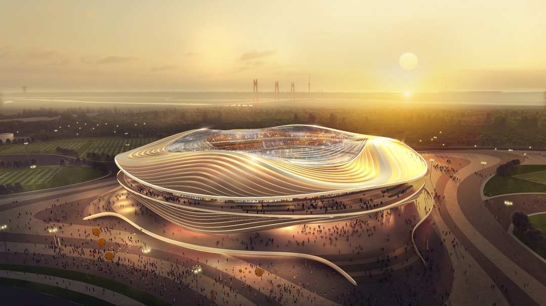 濟南新舊動能轉換起步區(qū)黃河體育及科技園區(qū)基礎設施一期工程位于濟南市起步區(qū)崔寨片區(qū)內,緊鄰黃河建設,北至鳳凰路、南至華河路、西至黃河大道、東至規(guī)劃路,包括專業(yè)足球場、體育館、游泳館及全民健身中心。其中,專業(yè)足球場總建筑面積約19.7萬平方米,地下1層,地上5層,建筑高度60米,場館外圈直徑達280米,索桁架最大懸挑長度約45米,總用鋼量2.34萬噸。建成后可容納6萬余人,是省內首座超大型專業(yè)足球場,國內最大的專業(yè)足球場之一,具備承辦世俱杯、亞洲杯等國際足聯(lián)、亞足聯(lián)的頂尖賽事能力。